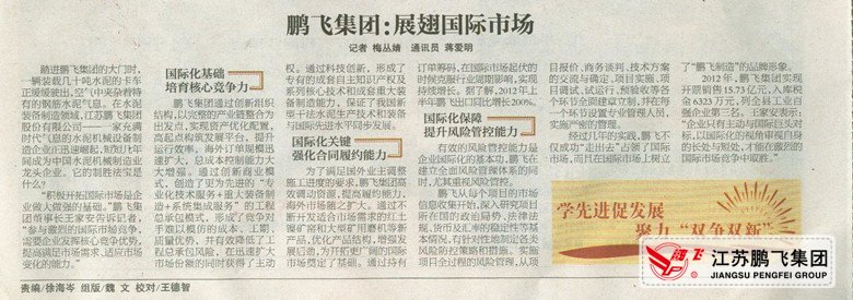 “積極開拓國際市場是企業(yè)做大做強(qiáng)的基礎(chǔ)。”鵬飛集團(tuán)董事長王家安告訴記者,“參與激烈的國際市場競爭,需要企業(yè)發(fā)揮核心競爭優(yōu)勢(shì),提高滿足市場需求、適應(yīng)市場變化的能力。”