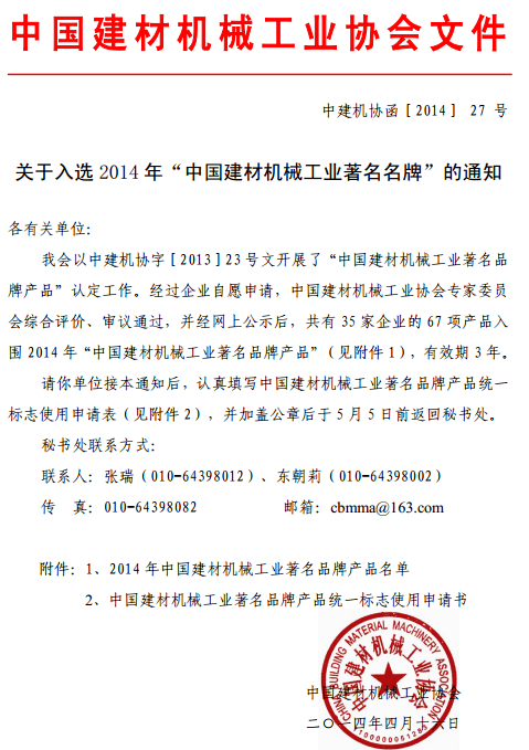 江蘇鵬飛集團(tuán)榮獲中國建材機(jī)械工業(yè)著名商標(biāo)