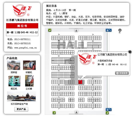 江蘇鵬飛集團在第119屆廣交會上精心布置展位,印發(fā)所產(chǎn)各類成套設備的介紹手冊,并運用全景水泥生產(chǎn)線模型現(xiàn)場演示,委派具有多年工作經(jīng)驗的銷售、技術、售后等專業(yè)工作人員為顧客詳細介紹新產(chǎn)品、新技術,全面分析解答各類設備從購買到投產(chǎn)使用以及售后服務等每個環(huán)節(jié)的問題,為您排疑解難,與您達成共識。同時,也希望能和更多的國內(nèi)外公司加強聯(lián)系,互相合作,為客戶提供更加完美的產(chǎn)品。