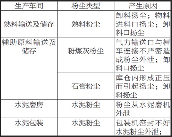 表1 水泥粉磨站粉塵污染來源統(tǒng)計表