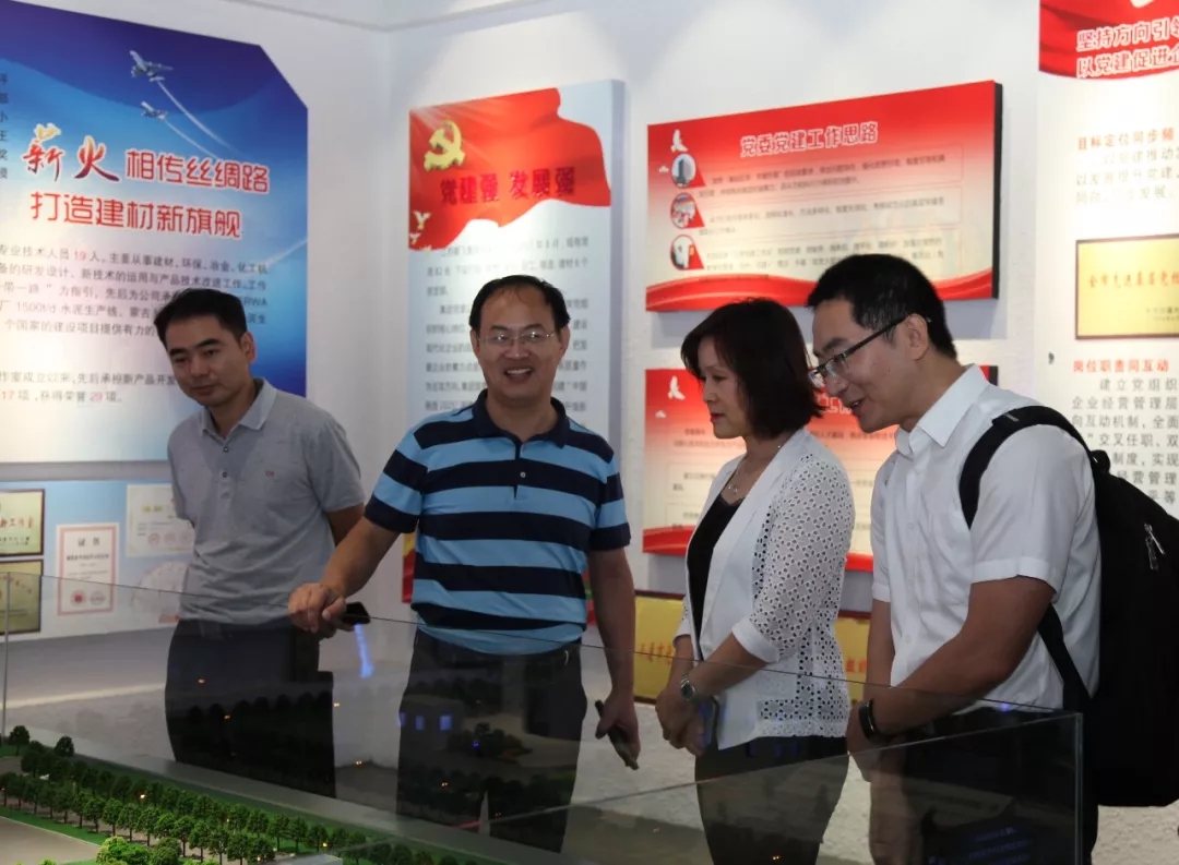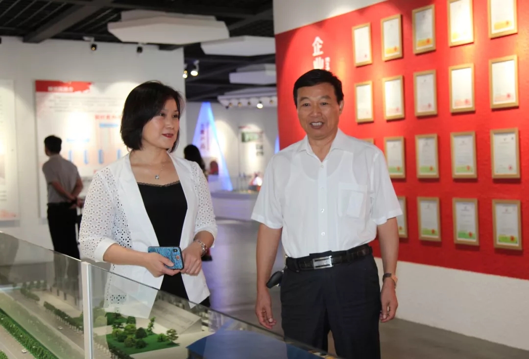 董事長王家安陪同全國建材裝備標(biāo)準(zhǔn)化技術(shù)委員會秘書長王玉敏參觀鵬飛集團(tuán)展示廳