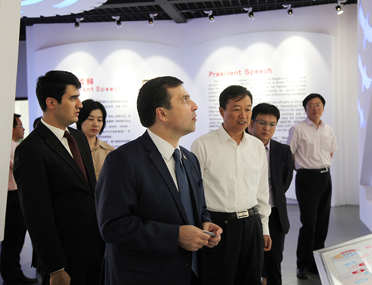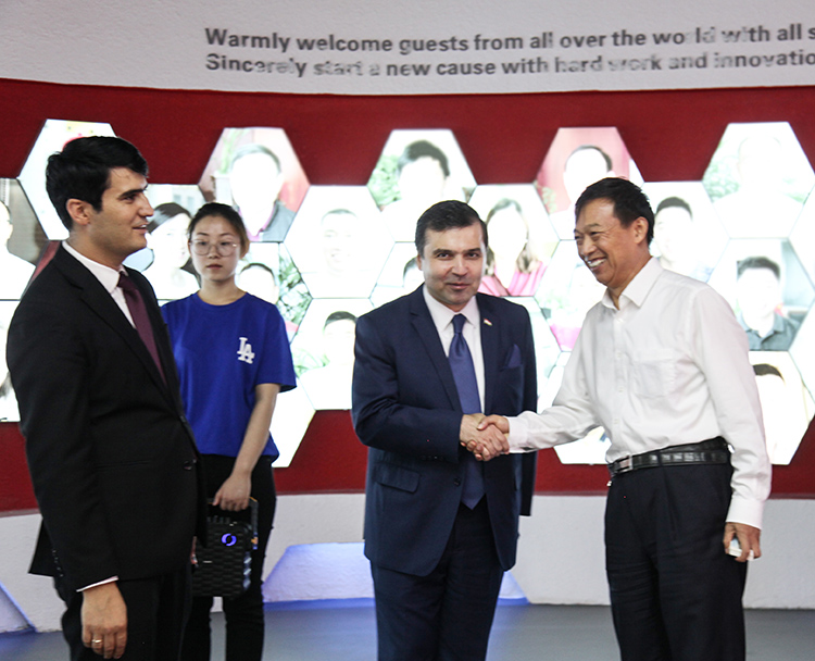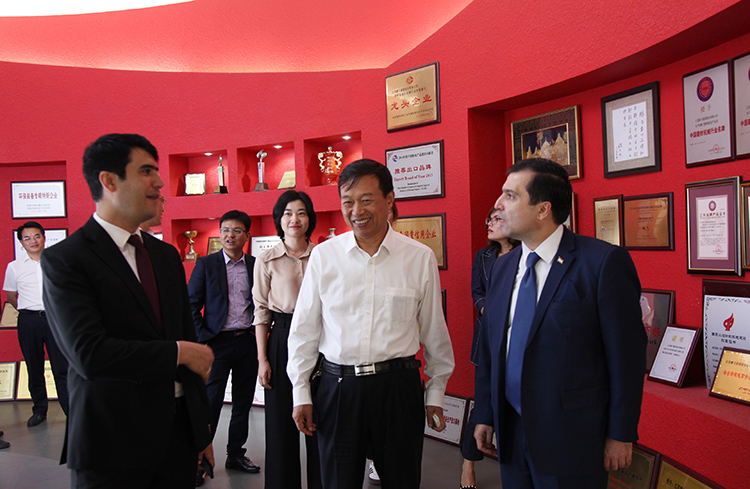 秋風(fēng)送爽,丹桂飄香。24日下午鵬飛集團(tuán)迎來了尊貴的客人——塔吉克斯坦駐中國大使達(dá)夫拉·特佐達(dá)先生一行。大使先生在海安市宣傳部領(lǐng)導(dǎo)的陪同下,參觀考察鵬飛集團(tuán)。