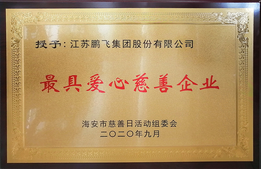 近日,海安市慈善基金會表彰了慈善工作先進集體和先進個人,基于在履行社會公益責(zé)任方面的突出表現(xiàn)和良好反響,江蘇鵬飛集團被慈善基金會授予“最具愛心慈善企業(yè)”稱號。