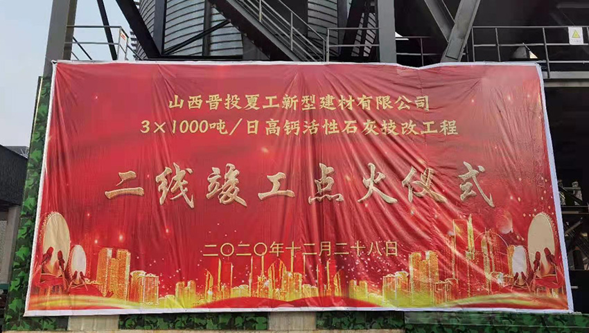 12月28日,由江蘇鵬飛集團(tuán)制造的山西晉投夏工3×1000tpd高鈣活性石灰回轉(zhuǎn)窯生產(chǎn)線主機(jī)設(shè)備二線點(diǎn)火成功