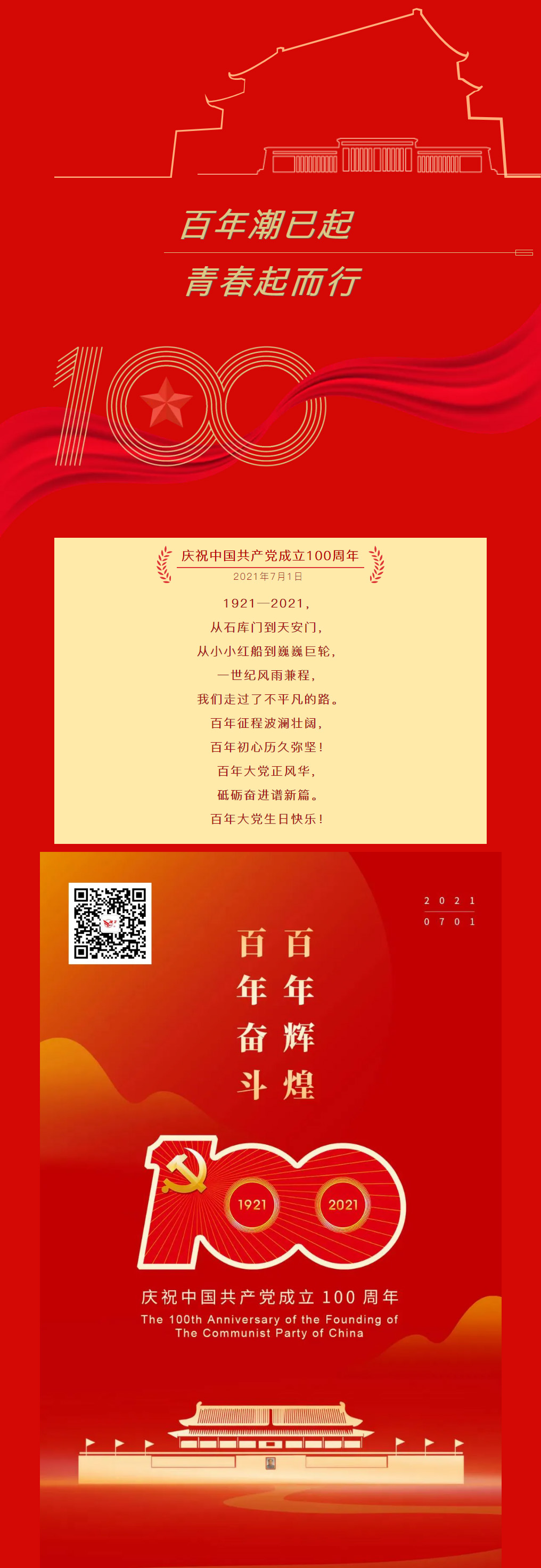 1921—2021,從石庫門到天安門,從小小紅船到巍巍巨輪,一世紀(jì)風(fēng)雨兼程,我們走過了不平凡的路。百年征程波瀾壯闊,百年初心歷久彌堅(jiān)!百年大黨正風(fēng)華,砥礪奮進(jìn)譜新篇。百年大黨生日快樂!
