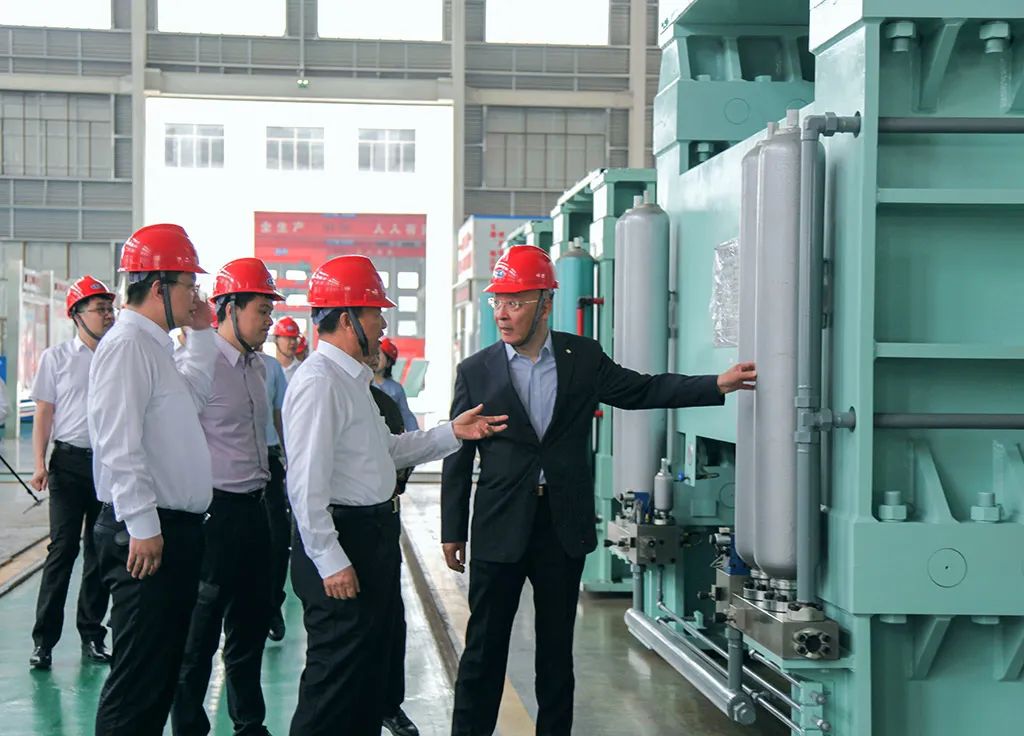 參觀中,王家安董事長向閻會長一行介紹了公司的發(fā)展歷程、現(xiàn)階段的裝備制造能力、近年來取得的重大成果,以及今后的主要目標(biāo)和任務(wù)。