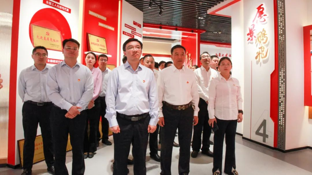 海安市委常委、組織部部長、統(tǒng)戰(zhàn)部部長錢旭東一行參觀鵬飛黨建館,了解了鵬飛集團“鵬心向黨 窯望未來”黨建品牌內(nèi)涵