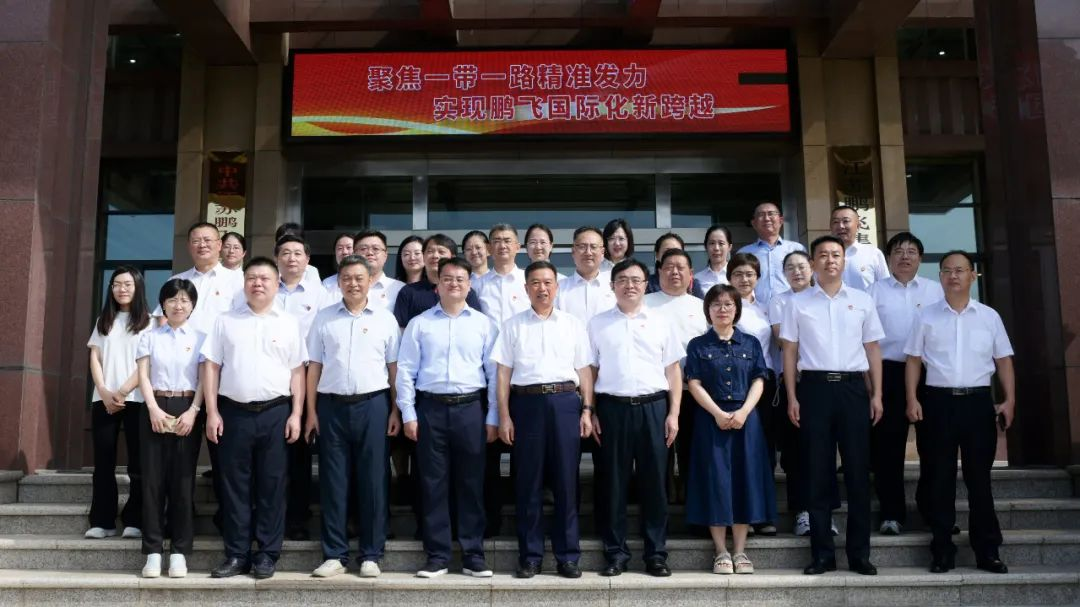 江蘇省科學技術(shù)情報研究所李敏所長一行來鵬飛調(diào)研,董事長王家安與他們合影留念
