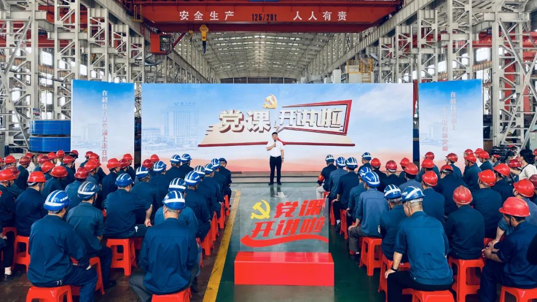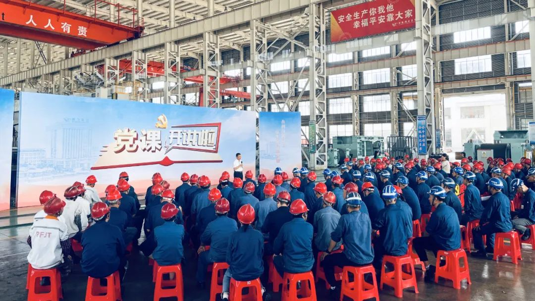 鵬飛集團董事長王家安、副總經(jīng)理施鵬宇在生產(chǎn)一線為職工上黨課,鼓勵員工不斷加強學習、提高素質(zhì)、強化安全意識、勇于擔當作為、注重團隊協(xié)作