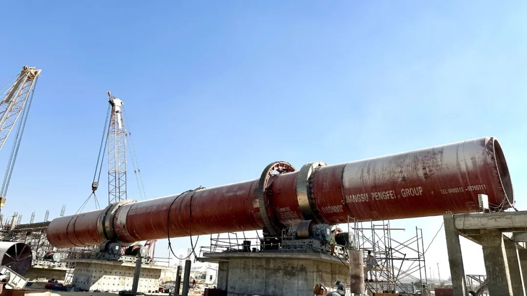 鵬飛集團生產(chǎn)的Φ4.5x68m回轉(zhuǎn)窯在埃及皇家水泥氧化鋅項目安裝現(xiàn)場