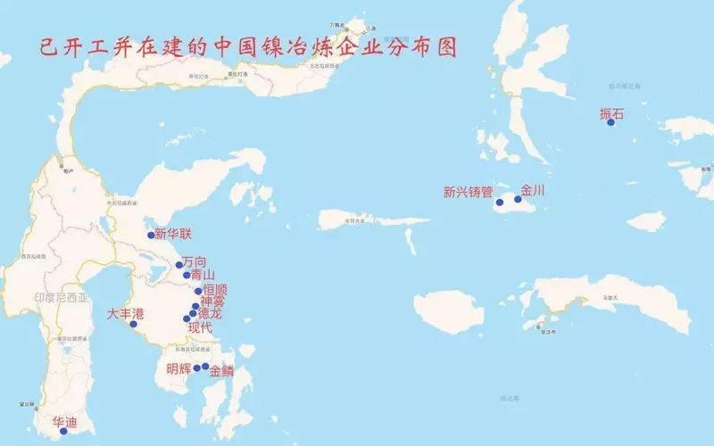 中國鎳冶煉企業(yè)項目在印尼分布