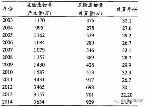 表1:2003—2014年中國(guó)工業(yè)危險(xiǎn)廢物處置情況