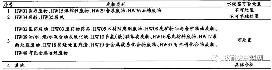 表2 水泥窯共處置危險(xiǎn)廢物種類(lèi)