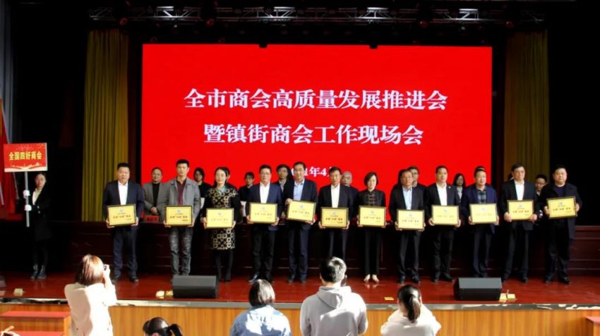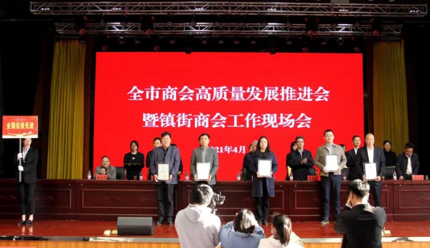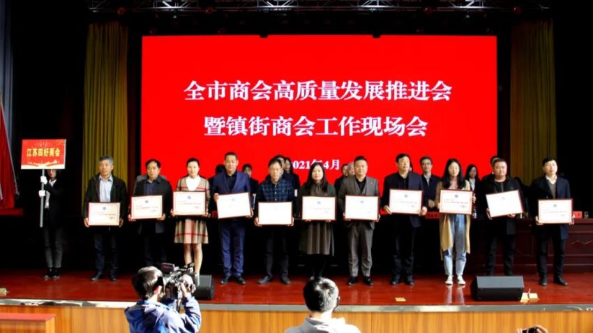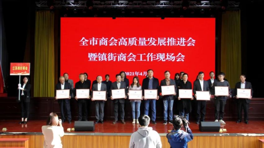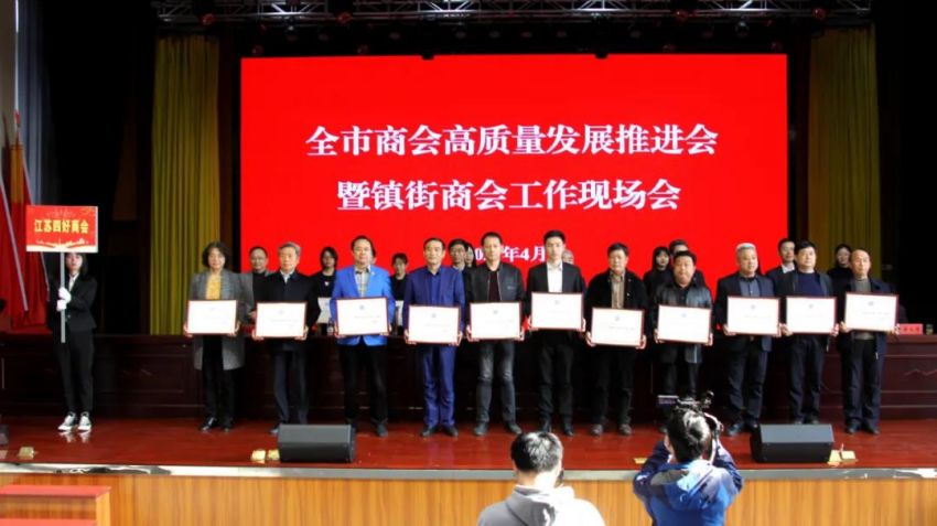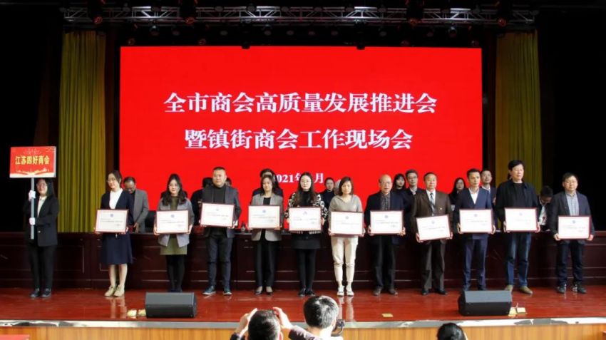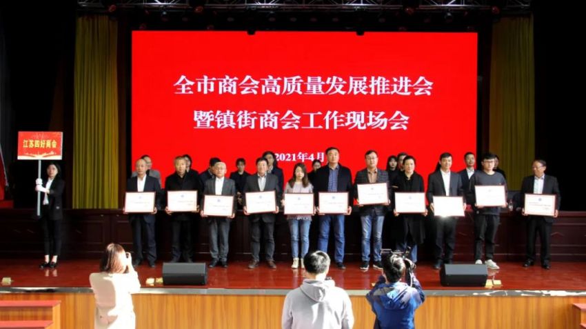 為學(xué)習(xí)貫徹中央、省商會工作會議精神,加快推進全市商會基層組織建設(shè),推進商會組織高質(zhì)量發(fā)展。4月19日下午,南通市工商聯(lián)(總商會)在我鎮(zhèn)隆重召開“全市商會高質(zhì)量發(fā)展推進會暨鎮(zhèn)街商會工作現(xiàn)場會”。南通市政府副市長、一級巡視員趙聞斌,江蘇省工商聯(lián)黨組成員、副主席李曉林,南通市委統(tǒng)戰(zhàn)部副部長、市工商聯(lián)黨組書記王虎,海安市委常委、組織部長、統(tǒng)戰(zhàn)部長張明星,南通市工商聯(lián)黨組成員、副主席羅加宏,海安市政協(xié)副主席、工商聯(lián)主席、總商會會長蔡祝平,大公鎮(zhèn)黨委書記金山存,黨委副書記、鎮(zhèn)長魯競等參加活動。出席會議的還有省工商聯(lián)、市民政局相關(guān)處室領(lǐng)導(dǎo),各縣(市)區(qū)委統(tǒng)戰(zhàn)部分管副部長、工商聯(lián)主要負(fù)責(zé)人及分管領(lǐng)導(dǎo),全市各鎮(zhèn)街(園區(qū))統(tǒng)戰(zhàn)委員,商會會長代表,受表彰的全國抗疫先進典型,全國、省、市四好商會,榮獲全市商會十大工作品牌的商會,商會十佳會長,十佳秘書長,部分市直商(協(xié))會主要負(fù)責(zé)人,以及市工商聯(lián)相關(guān)部室人員共計250余人。