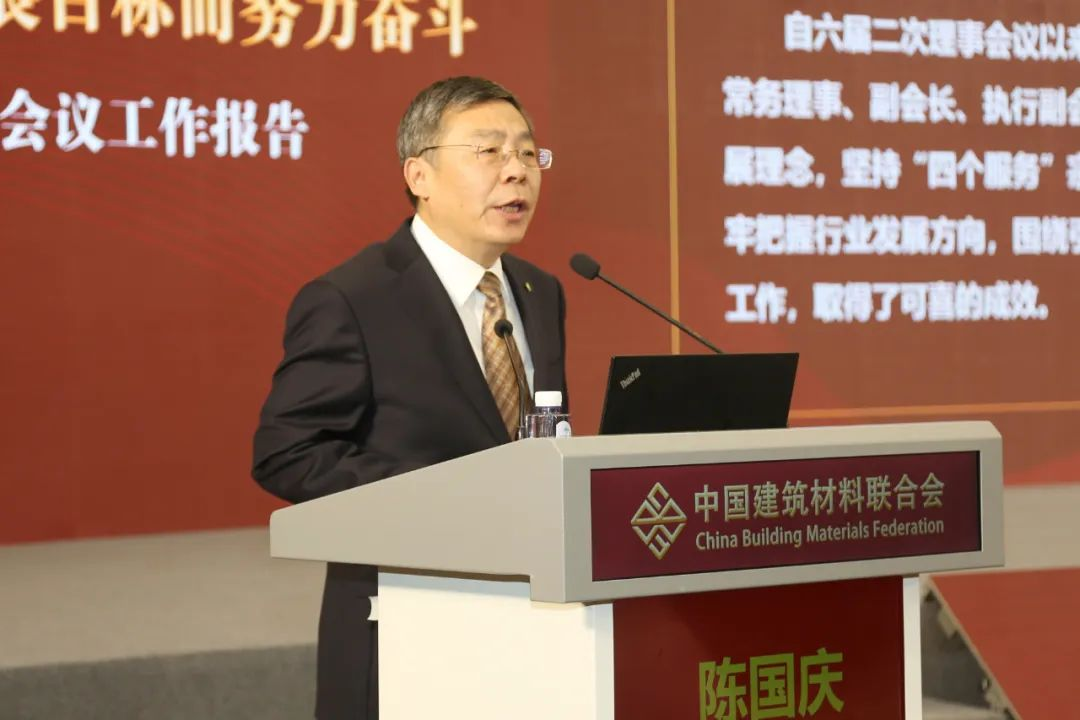 受會長閻曉峰委托,陳國慶代表中國建筑材料聯(lián)合會六屆理事會作題為《堅持綠色低碳安全高質(zhì)量發(fā)展 堅持“四個服務(wù)”工作定位 為實現(xiàn)“宜業(yè)尚品、造福人類”行業(yè)發(fā)展目標(biāo)而努力奮斗》的工作報告。報告回顧了聯(lián)合會近一年來的工作情況,分析了面臨的形勢任務(wù),提出了下一步工作思路舉措。