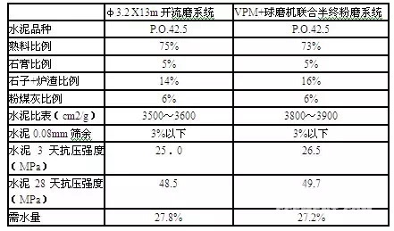關(guān)于水泥質(zhì)量,我們與該廠老生產(chǎn)線(φ3.2 X13m開流磨系統(tǒng))所生產(chǎn)的水泥進行對比,結(jié)果如下:
