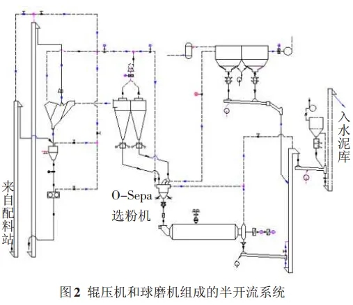 2 輥壓機和球磨機組成的半開流系統(tǒng)