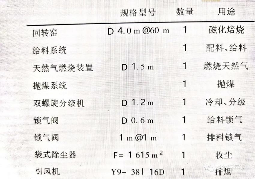 一、燒結菱鐵礦回轉(zhuǎn)窯參數(shù)