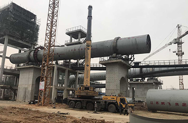 轉(zhuǎn)化焙燒:鋰輝石精礦從精礦庫人工送至斗式提升機(jī)提升至精礦倉,再經(jīng)圓盤給料機(jī)和螺旋給料機(jī)加入碳酸鋰回轉(zhuǎn)窯窯尾,利用窯尾預(yù)熱段高溫氣體干燥精礦,精礦在煅燒段約1200℃左右的溫度下進(jìn)行晶型轉(zhuǎn)化焙燒,由α型(單斜晶系,密度3150kg/m3)轉(zhuǎn)化為β型鋰輝石(四方晶系,密度2400kg/m3,即焙料),轉(zhuǎn)化率約98%。