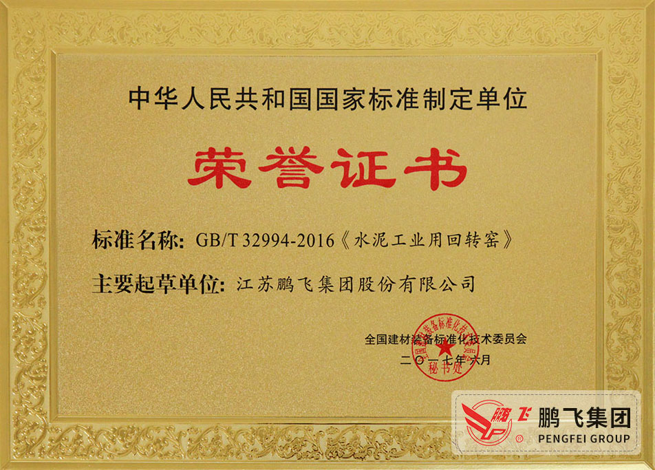 (2017年6月21)回轉(zhuǎn)窯國(guó)標(biāo)起草證書(shū)技術(shù)標(biāo)準(zhǔn)優(yōu)秀獎(jiǎng)