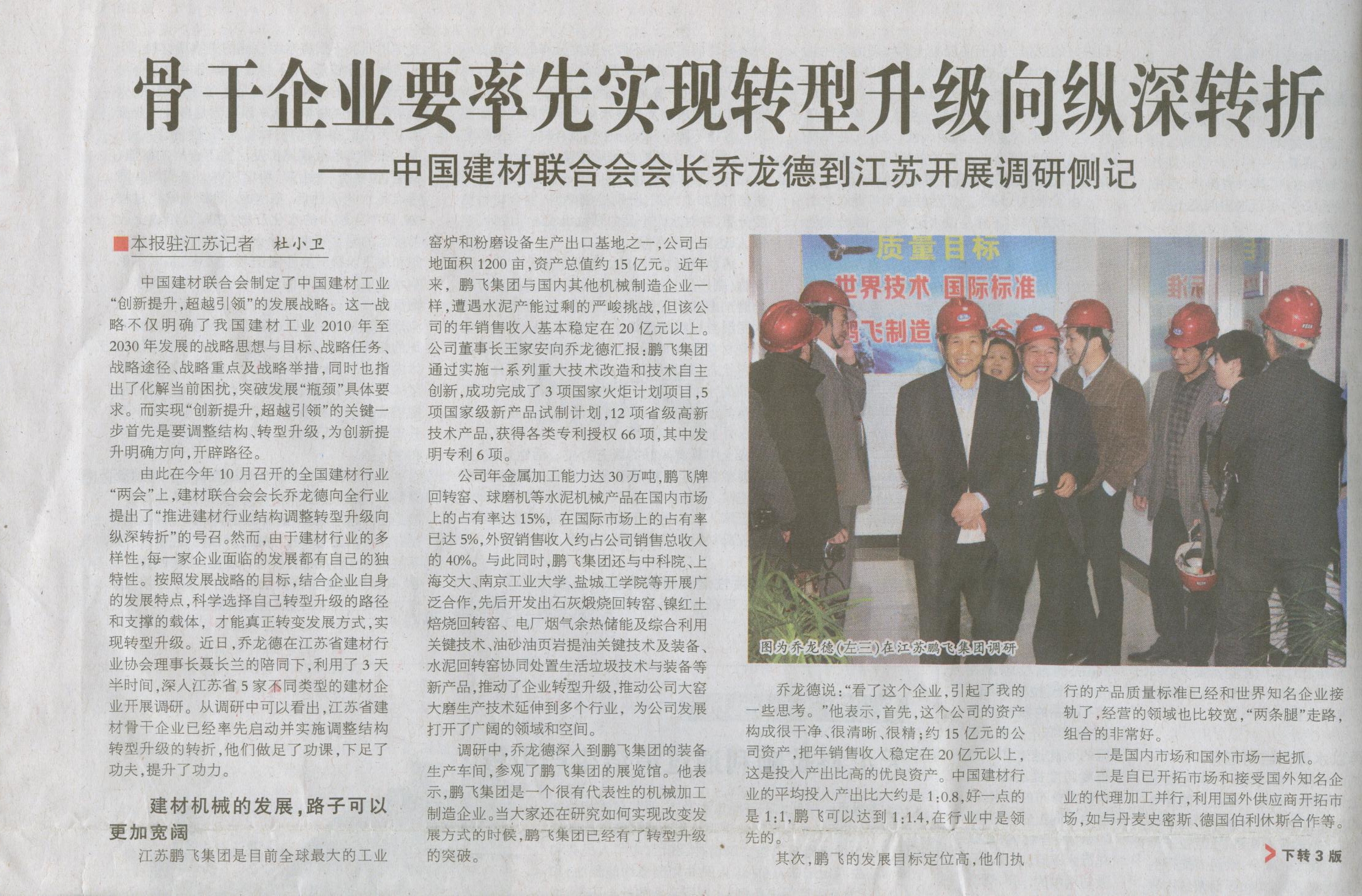骨干企業(yè)要率先實(shí)現(xiàn)轉(zhuǎn)型升級向縱深轉(zhuǎn)折——中國建材聯(lián)合會會長喬龍德到江蘇開展調(diào)研側(cè)記