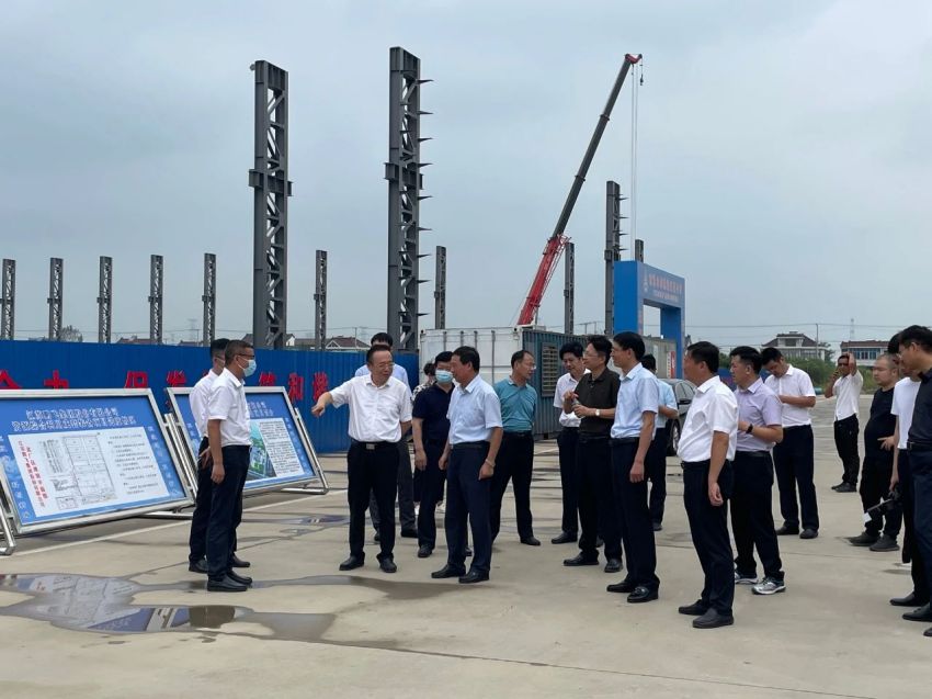 江蘇鵬飛集團(tuán)股份有限公司資源綜合利用成套裝備生產(chǎn)項(xiàng)目現(xiàn)場(chǎng),黃衛(wèi)成聽取了公司董事長(zhǎng)王家安關(guān)于資源綜合利用成套裝備生產(chǎn)項(xiàng)目的投資規(guī)模、用地面積、建筑面積、建設(shè)進(jìn)度等情況的介紹。此外,他還就項(xiàng)目建設(shè)的手續(xù)審批、大件產(chǎn)品的運(yùn)輸、疫情對(duì)公司產(chǎn)品出口造成的影響等問題與王家安進(jìn)行交流。